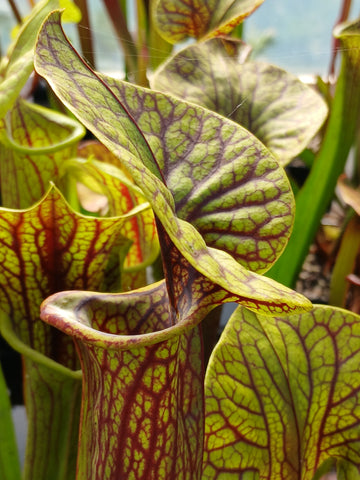 Le Sarracenia flava "superornata" n'est pas un cultivar officiel. Ce Sarracenia flava var. ornata produit des pièges assez larges ornés d'un veinage rouge omniprésent sur l'ensemble de sa feuille. Chapeau large. C'est l'un des Sarracenia flava à la croissance la plus tardive chez nous. Un Must !